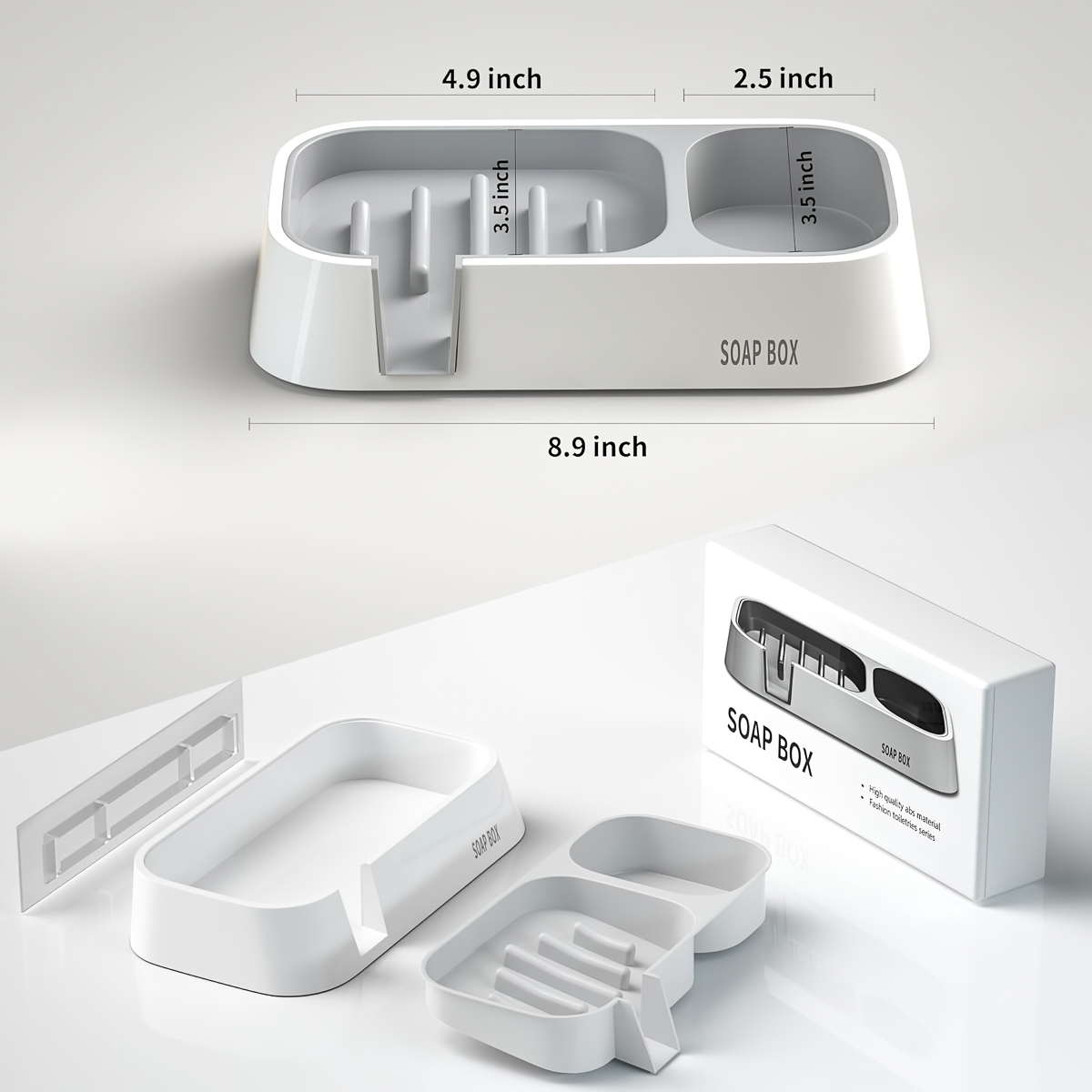 le porte-savon peut évacuer l’eau, gardant toujours la table propre et bien rangée.