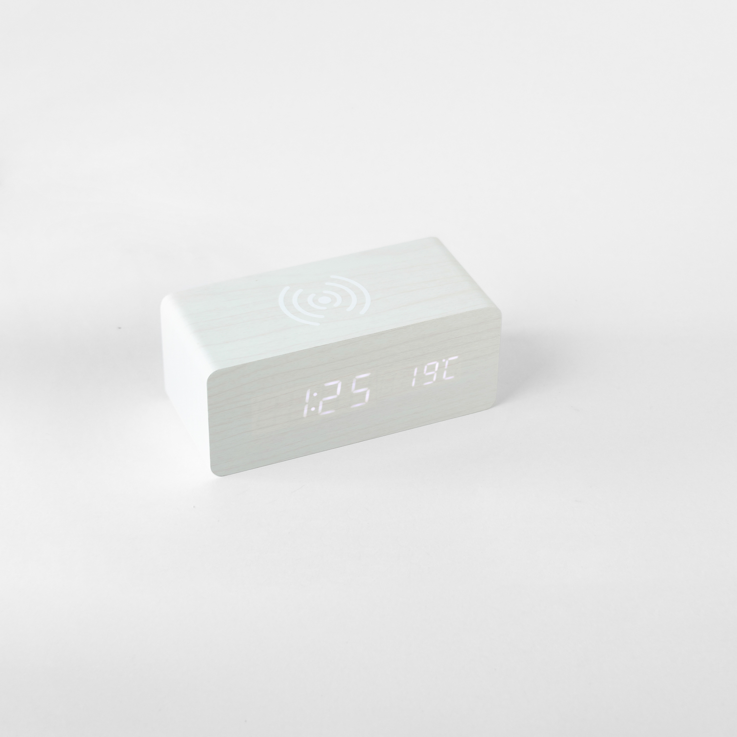Réveil Numérique en Bois de chargement sans fil, USB Charge Clock de , charge rapide avec tous les téléphones portables compatibles.