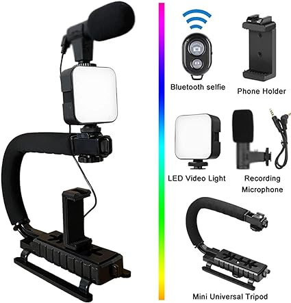 en forme de u/c, avec kit de microphone + kit d’éclairage de studio led,