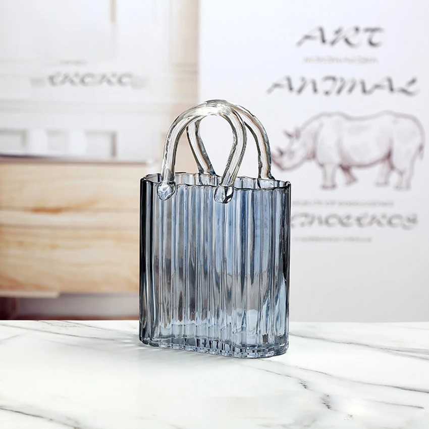Les vases en verre clair en forme de sac à main sont des objets décoratifs élégants qui apportent une touche de raffinement à votre intérieur.